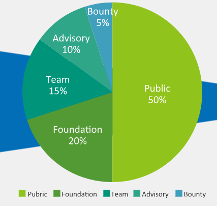 Public: 50%Foundation: 20%Team: 15%Advisory: 10%