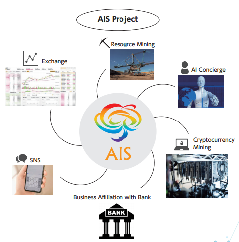ExchangeAIS token is a native coin for the cryptocurrency exchange AIS-X. Resource miningThe new resource mining company will excavate gold, bronze, and coal but will specialize in mining rare metals. Cryptocurrency MiningThe new cryptocurrency mining farm will excavate various cryptocurrencies using customized ASIC machines with measures risk hedging against the decline of mining efficiency.