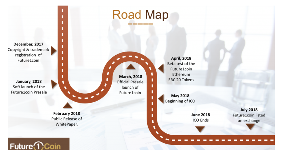 Future1coin tokens will be issued during our Crowdsale. Here are the details of the Crowdsale: COIN NAME – FUTURE1COIN TOKEN – Ethereum (ERC-20) SYMBOL – F1C DECIMAL – 18 MANAGEMENT – 50 MILLION TOKENS PRESALE / ICO– 250 MILLION TOKENS TOTAL – 300 MILLION TOKENS SOFT CAP – 500,000 USD HARD CAP – 2 MILLION USD