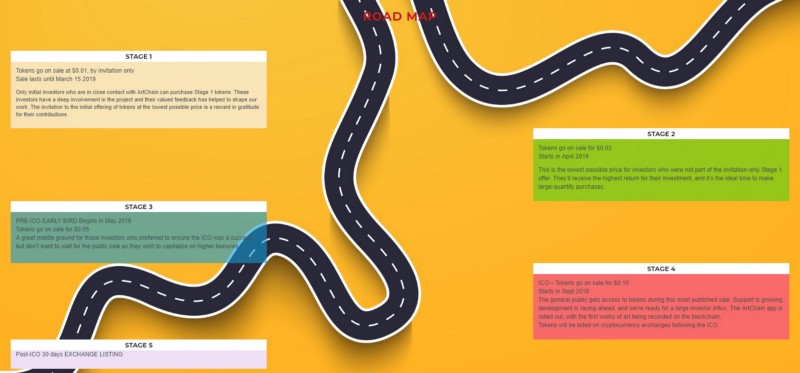 masyarakat umum memiliki akses ke token selama penjualan masyarakat ini. Dukungan tumbuh, pengembangan bergerak maju, dan perusahaan berharap akan ada banyak investor. Aplikasi ArtCoin akan diluncurkan, karya seni pertama akan diluncurkan pada blockchain. Setelah ICO, token akan terdaftar di bursa cryptocurrency.