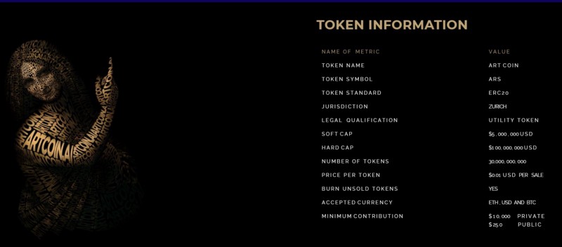 ArtCoin, dengan memandu pengguna melalui transaksi cryptocurrency, memungkinkan investor mendapatkan manfaat dari peningkatan keamanan dan mentransfer dalam Kontrak Cerdas. ArtCoin mengumpulkan informasi yang tidak dapat diakses oleh investor biasa, sambil mendemokratisasikan pasar seni dan melakukan penghubung antara investor dan industri seni.