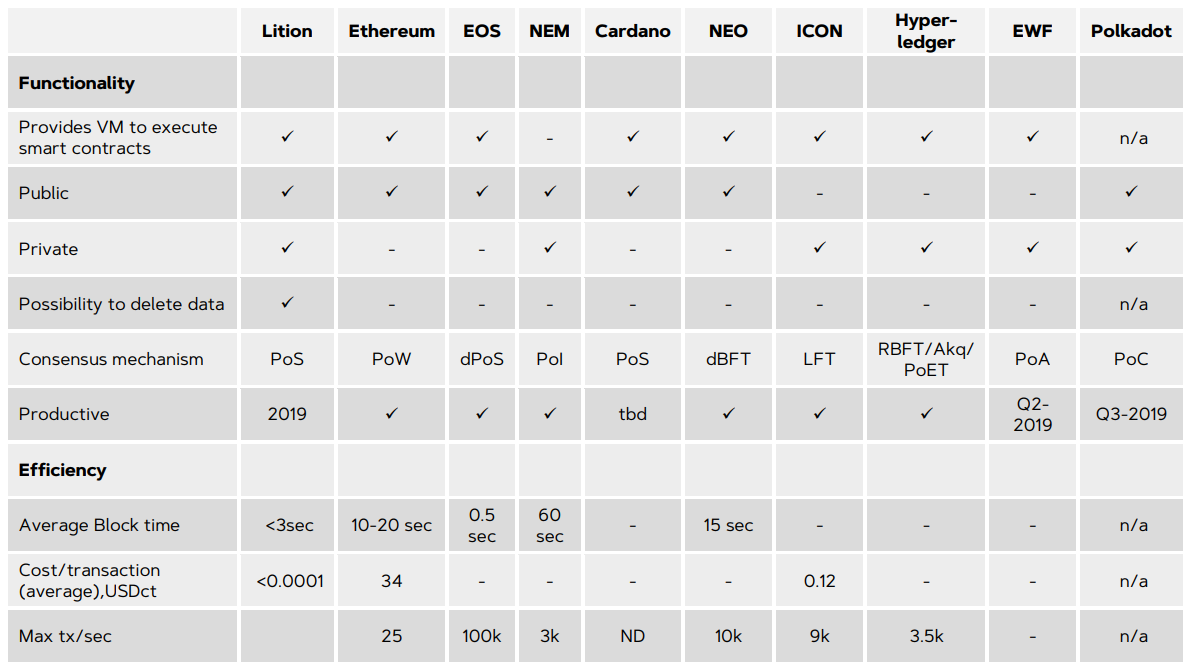 Lition lists the following points as their main selling points/points of difference to other blockchain projects —