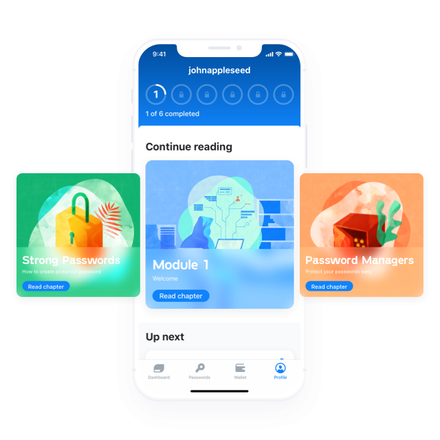 Accounts Management. In this module, users will learn how to create a strong password, what passwords they should avoid, and how to minimize risks of being hacked using weak passwords. Also, users will check their accounts for compromised data leakages and learn how to use 2FA-authentication in the safest way. After passing this module, the user will gain access to and learn how to efficiently set up the HackenAI password manager and will be allowed to subscribe to a dark web monitoring service.